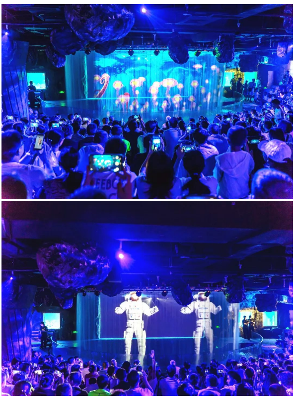 配合不断变换的灯光颜色,
